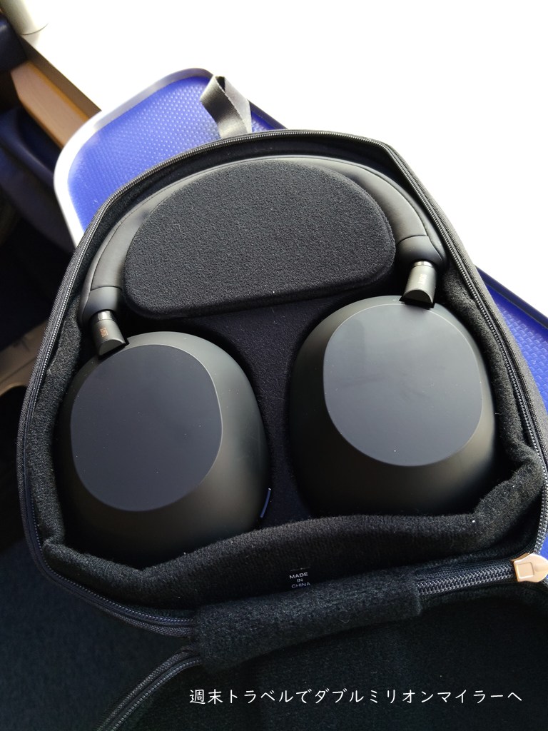 ヘッドフォンはソニーのノイズキャンセルタイプ。耳を覆うタイプなので、没入できるのですが、眼鏡との相性がよろしくなく・・・