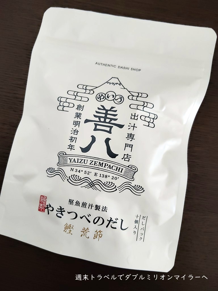 いただいたのは、「やいづ善八」のだしパック「やきつべのだし 荒節」、と「さくさく鰹ふりかけ」の2品、地元から離れて長くなりますが、静岡の良さを思い出させてくれる、そんな心遣いがをありがたく思いました。