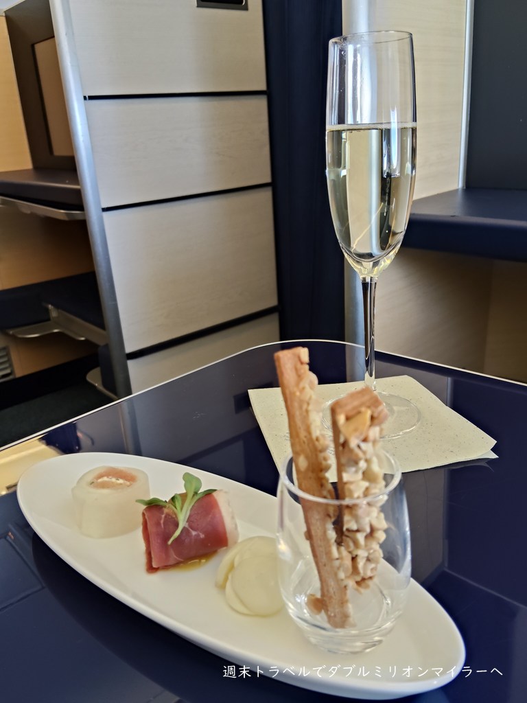 機内食の美味しさは安定のANA、アペタイザーから始まる機内食をゆっくりいただきながらシカゴに向かいました。