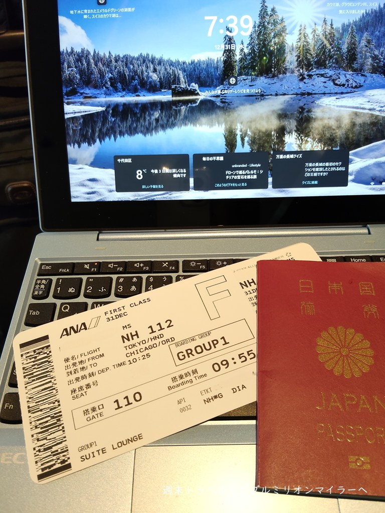 例年同様、ANAマイレージクラブの特典航空券を利用した旅行、なんとか夫婦同じフライトのファーストクラス席の予約が取れ、ゆったりとしたシートに座ってシカゴへ。