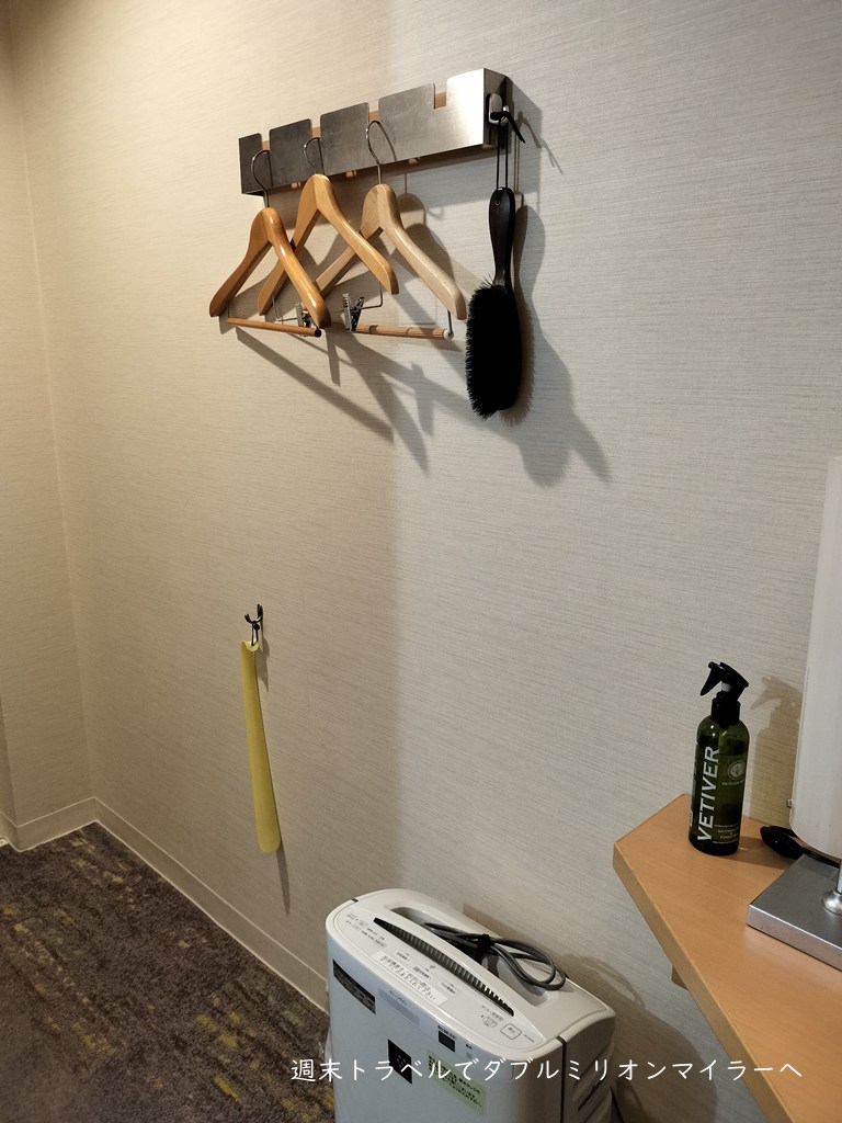 省スペース化のため、クローゼットはなく、壁にハンガーで洋服を掛けるスタイル、1泊程度でかつシングル利用でしたら全く問題ありません。