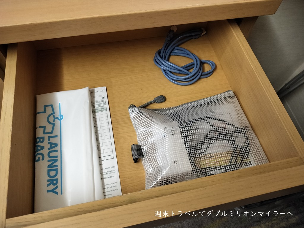 引き出しの中にはケーブルと充電器のアダプタがあり、細かいところへの気遣いもあります。