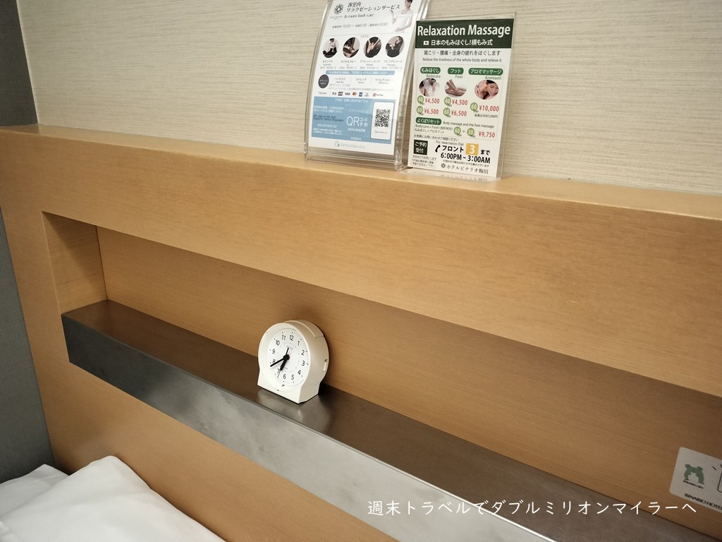 ベッドヘッドには目覚まし時計や充電スペースなど、配置は使いやすいと思いました。