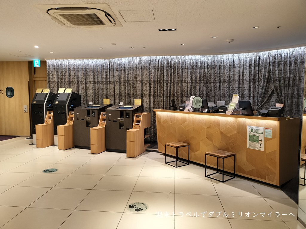 ロビースペースはこじんまりした造り、チェックインの窓口にはスタッフさんがおられますが、手続きは4台あるチェックイン機に案内されます。必要事項の入力などをすると、カードキーが発行されて、部屋に向かいます。