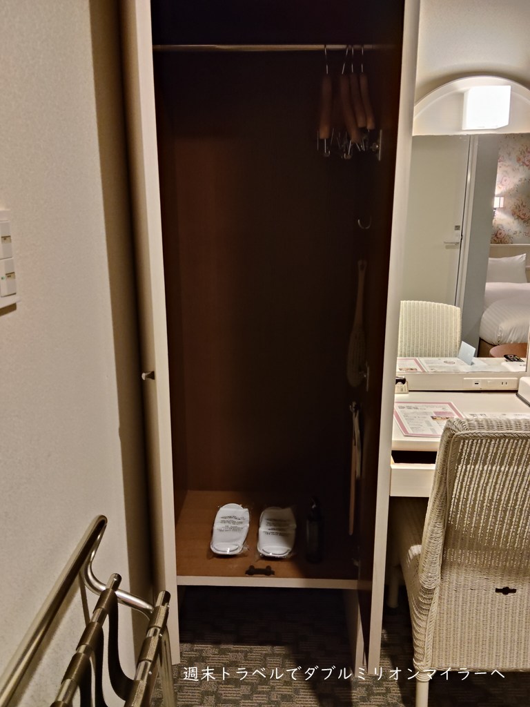 クローゼットは扉付きの独立タイプ、スリッパも完備されていて助かりました。