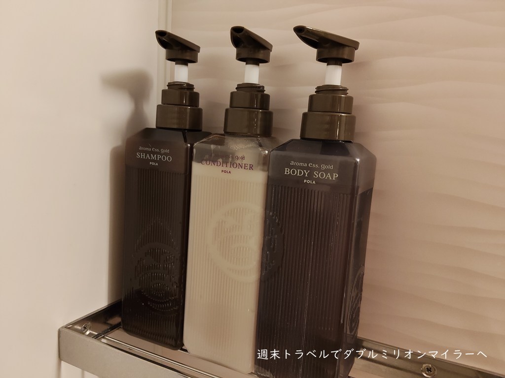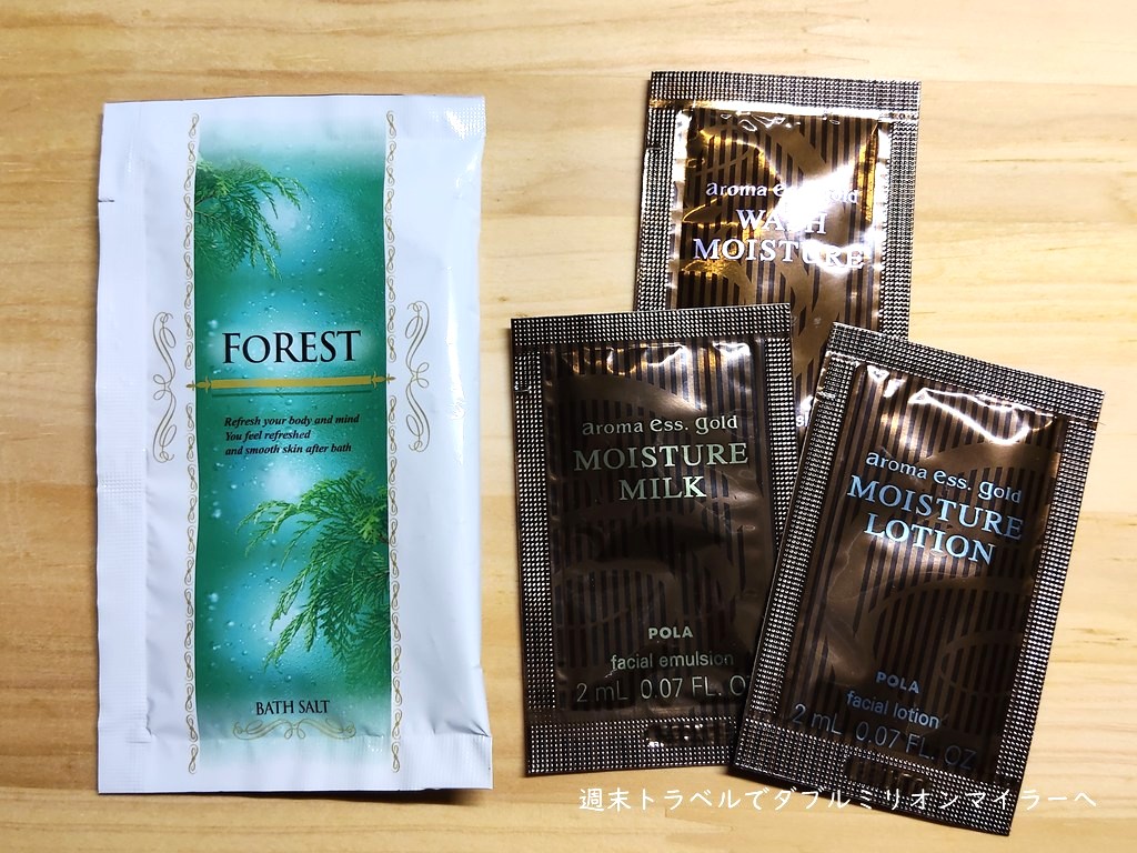 入浴剤のほか、POLAの基礎化粧品があるのはありがたいサービス、女性への配慮が感じられます。