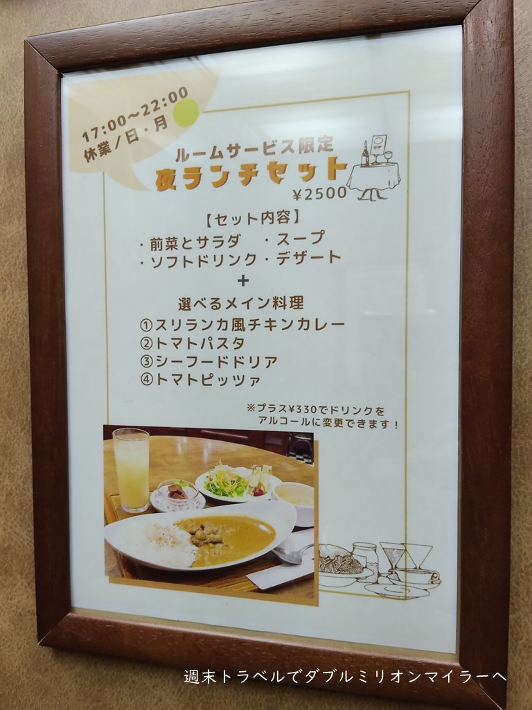 宿泊者向けのサービスセットメニューなどもあり、使えるサービスです。