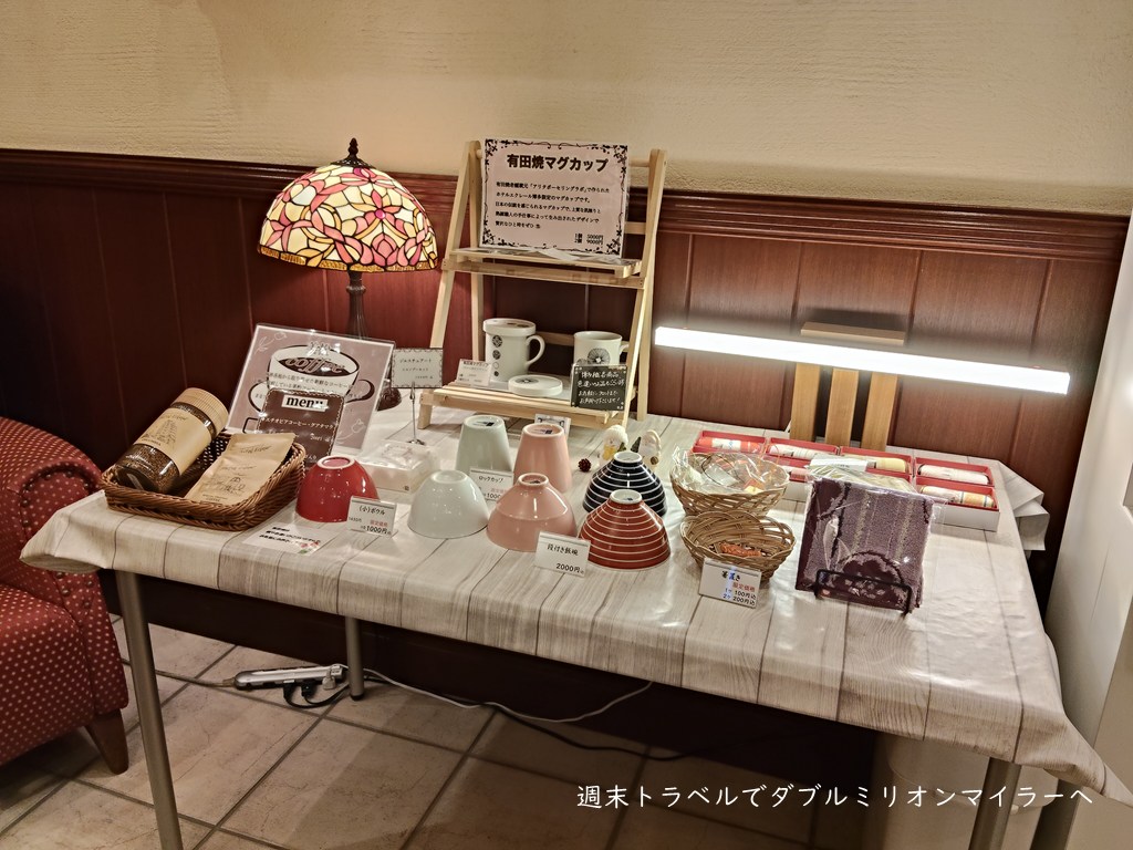 部屋に備えられている有田焼のマグカップは、ロビーで販売もされています。