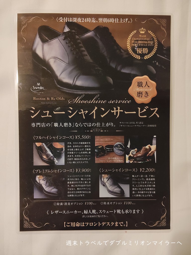 滞在中に最も驚いたのが、靴のシャインサービスが用意されていたこと。