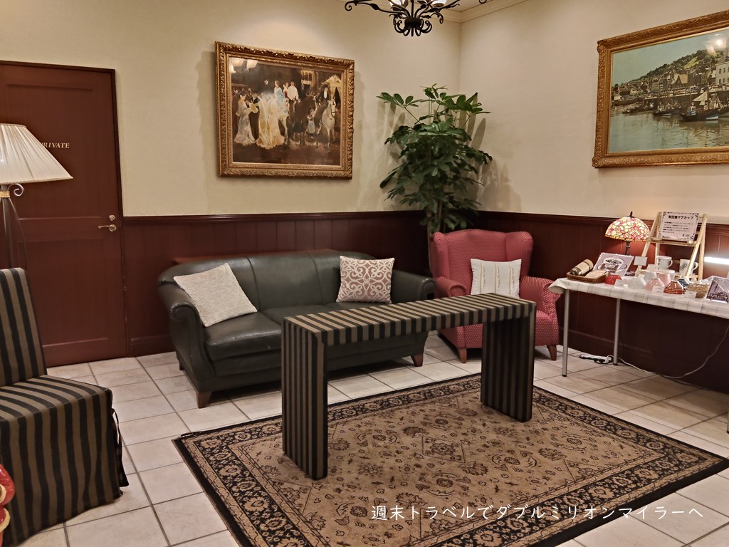 ホテルロビーはヨーロッパ風のインテリア、落ち着いています。
