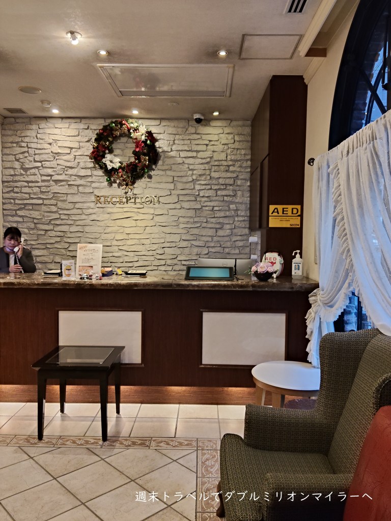 フロントにも大きなクリスマスリースが飾られているなど温かい雰囲気。チェックイン機による手続きをするホテルが増えていますが、こちらのホテルは、常にスタッフさんが1人はフロントに立っておられるなど、ホスピタリティを感じるサービスを提供しています。