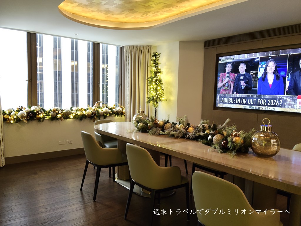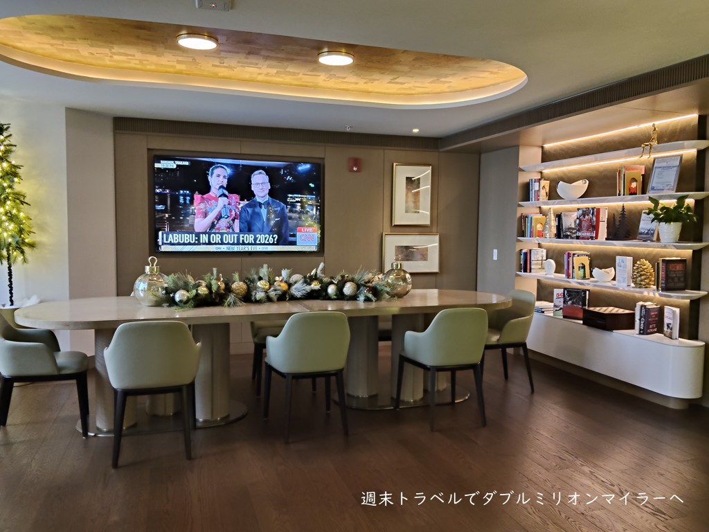 【2025年12月宿泊】フェアモントシカゴ宿泊記②~フェアモントゴールド宿泊者が利用できるゴールドラウンジは心地よい場所、ホリデーシーズンはクリスマスの装い