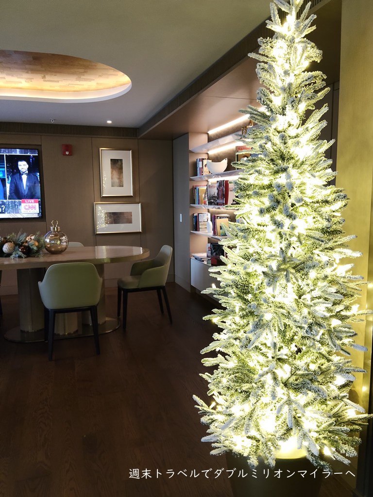 ラウンジ内は大きなクリスマスツリーが飾られ、ホリデーシーズンの雰囲気。とても華やかです。