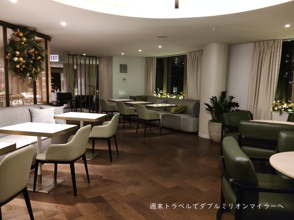 この時間帯のみアルコールをフリーでサービスするホテルが多いですが、フェアモントシカゴではこの時間帯もアルコールは有料、そのためか、アルコールを楽しんでいるお客さんを見かけたのは、滞在中1組だけ。有料となると皆さん利用されないのですね・・・