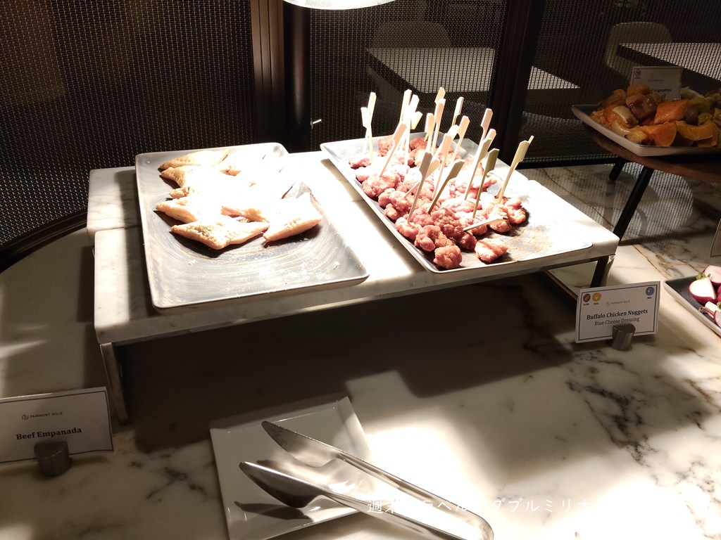 ゴールドラウンジのフードプレゼンテーションの紹介、夕方のイブニングカナッペの様子を紹介します。