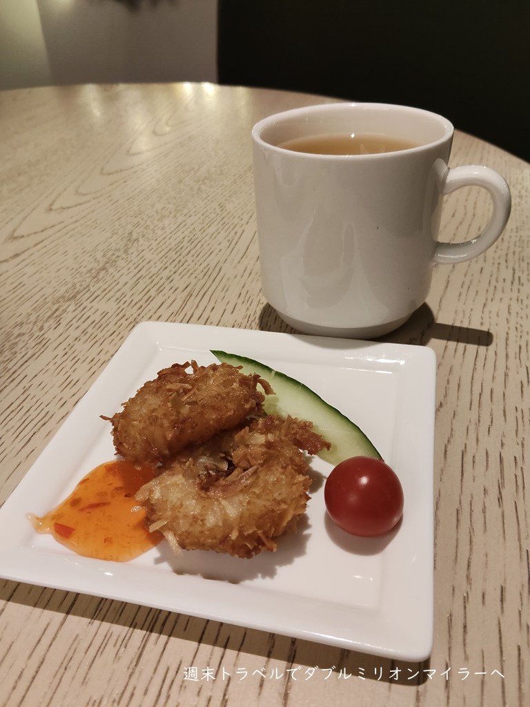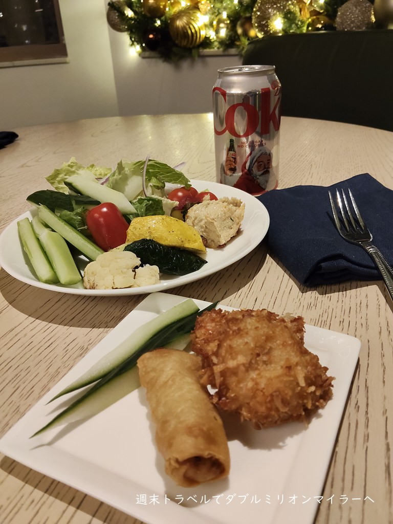 2日目のメインは、野菜春巻きとココナッツシュリンプの組み合わせ。ちょっとボリュームがあるものがメインとして用意されているようでした。