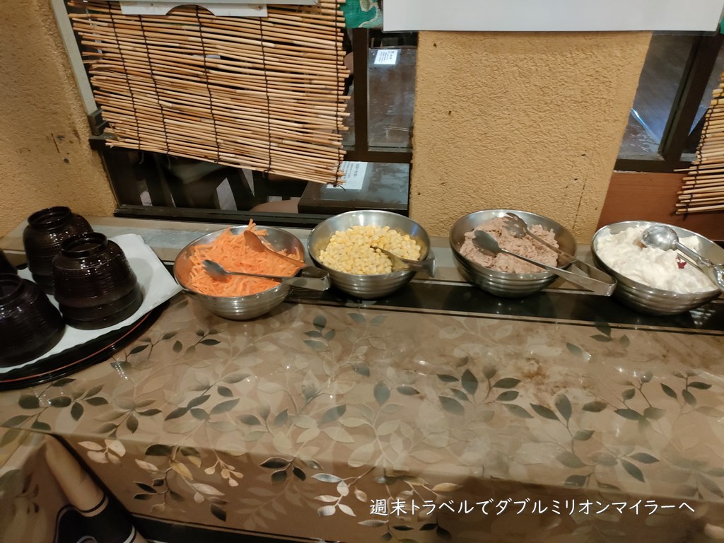 パン、ヨーグルトなど洋食メニューもあり、種類は豊富、早朝の時間帯は「軽朝食」とあったので、お料理の種類が少ないのかと思っていましたが、想像以上に種類が多く驚きました。