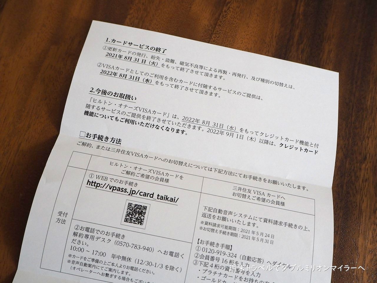 裏面にはカードの解約手続きの方法、VISAカードの切り替えの方法などの案内、いずれもとても丁寧に記載されていました。