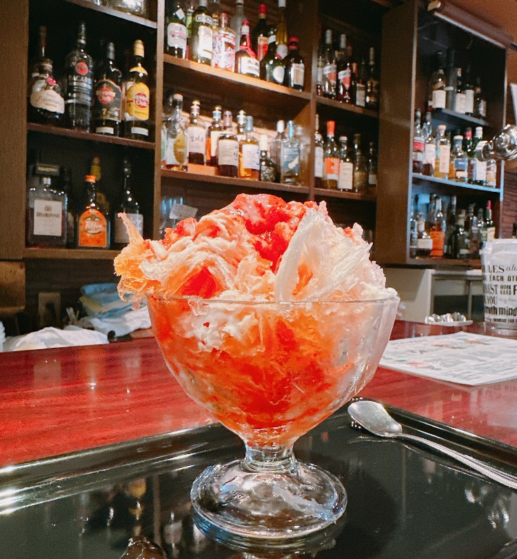 いただいている途中で、ちょうど氷が切れ、新しい氷をセットするところを間近で見たのですが、使われている氷は透き通る透明なもの、あまりのきれいさにうっとりしました。温度管理が適切なのか、口当たりもよく、本当に美味しい氷だと思いました。