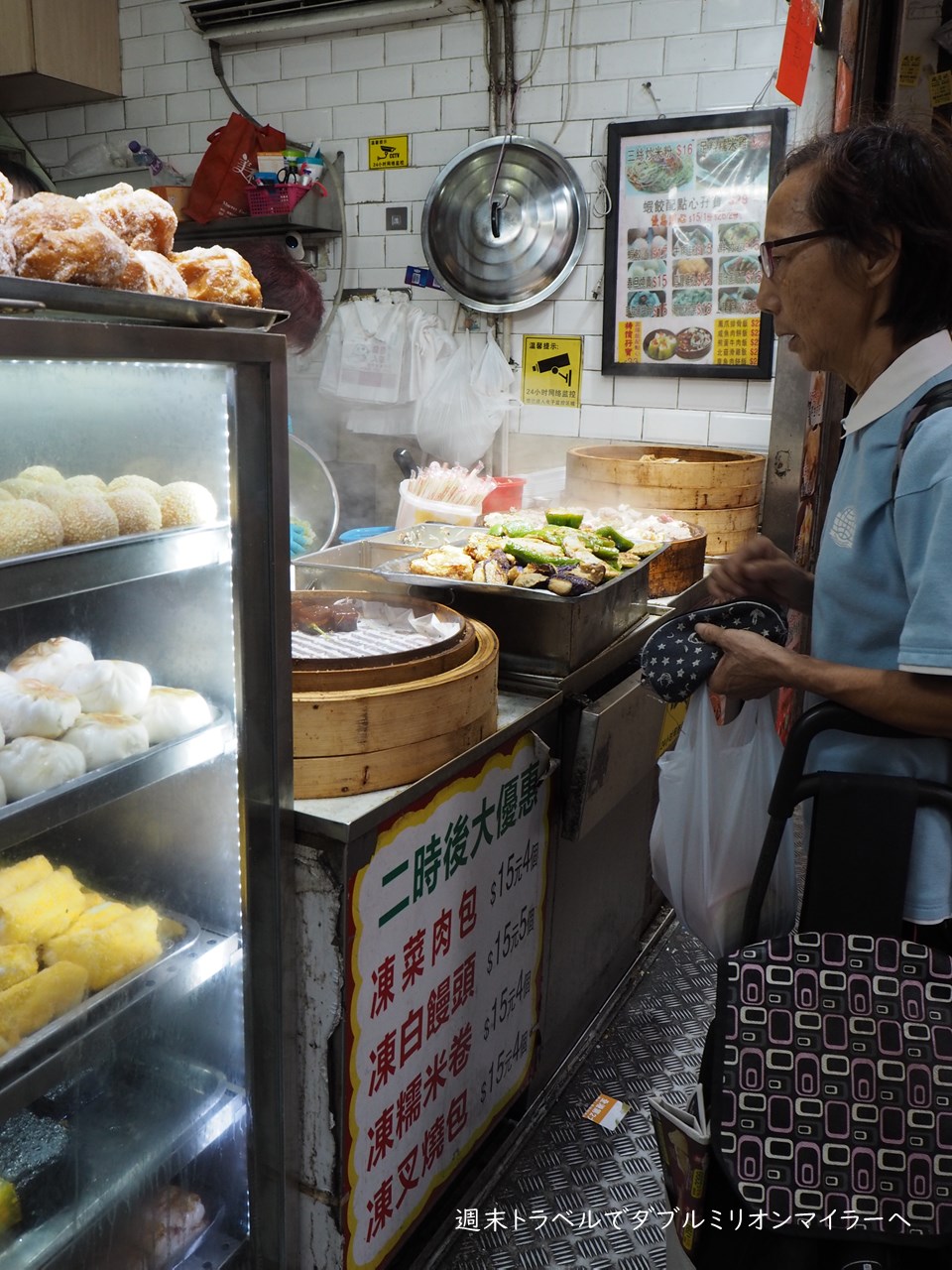 旺角の青空市場を散策している途中、お持ち帰り点心の専門店「包點超人」で点心を買ってホテルの部屋で飲茶を楽しみました。