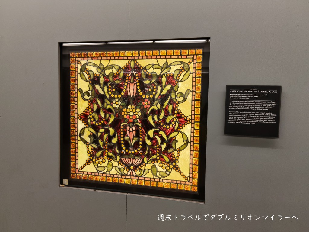 ここには、19世紀〜20世紀初頭のアメリカン・ヴィクトリアン様式のステンドグラス作品が壁面展示されています。