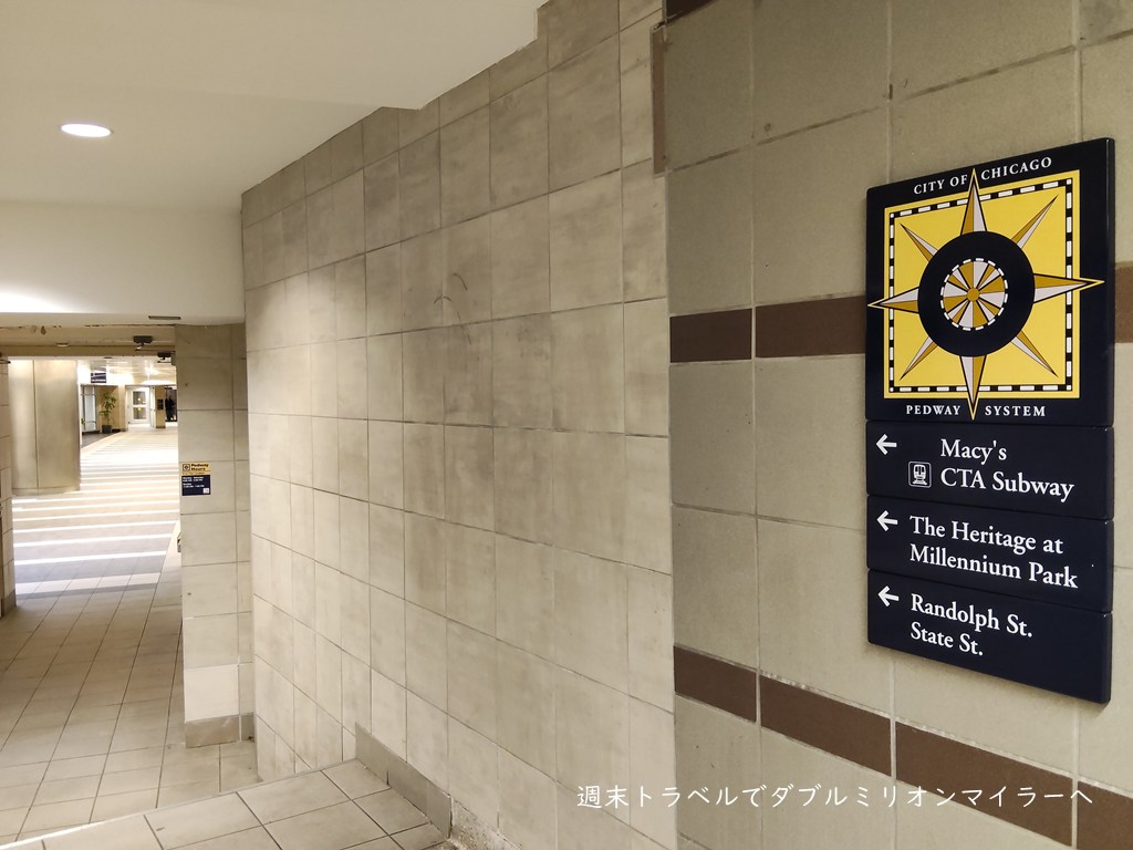 CTA駅と周辺のビルを結ぶ地下道、日本では多くの都市で見かけるインフラですが、アメリカでは非常に珍しいもの。観光ガイドではあまり大きく取り上げられていませんが、実際に冬のシカゴを歩くと、その存在価値は大きいと思いました。