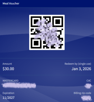 中身を見ると、食事に使えるバウチャーとのこと。