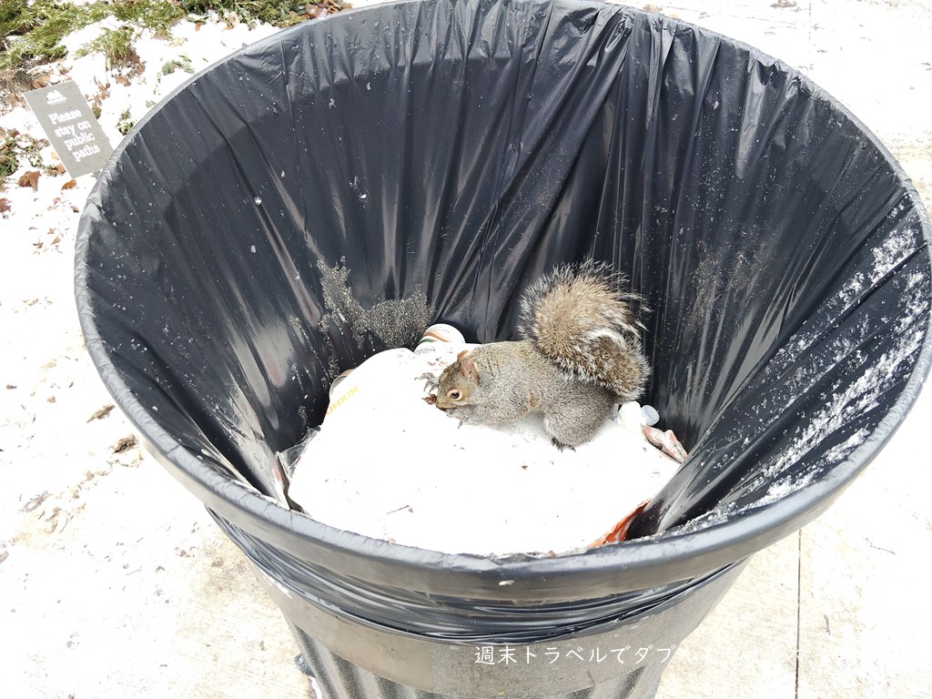 ミレニアムパークのりすは丸々と太っています。むさぼっているのは・・・