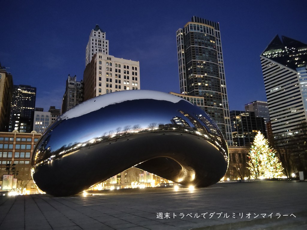 【2025-26年末年始シカゴ旅行】雪の残るシカゴは極寒、防寒対策してウォーキングへ、夜明け前のビーンズは幻想的でおすすめ