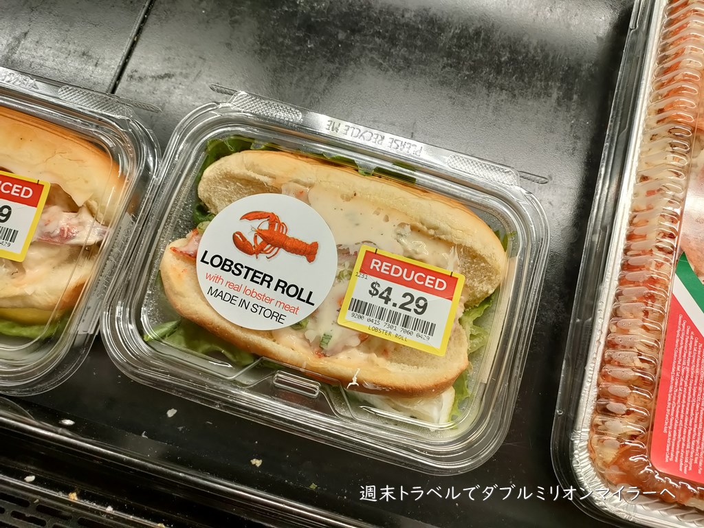 サンドイッチはフィリングの違いでいろいろありましたが、買ってきたのは「ロブスターロール」。半額で4.29ドルでした。