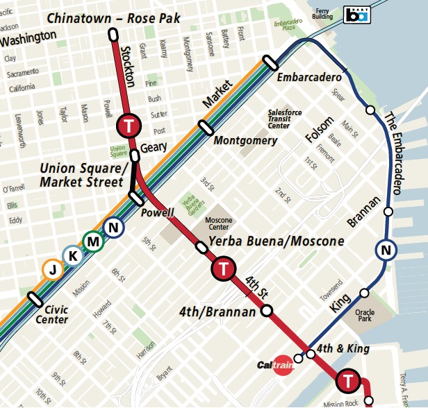 Nラインは、オーシャンビーチから、カルトレイン駅のある4th&キングまでの路線、サンフランシスコの中心部では地下を走行していますが、エンバカデロから先、海沿いでは地上を通るルート、海を眺めながら乗車できます。