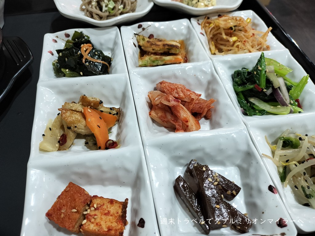 そういえば、韓国の食堂ではおかず(お惣菜)がたくさん出てくることが多く、そしてお代わりができるというサービスをよく見かけたことを思い出しました。ごま油が効いていて食欲をそそるものばかり、こちらのランチもそれに近いサービスなのだと思いました。