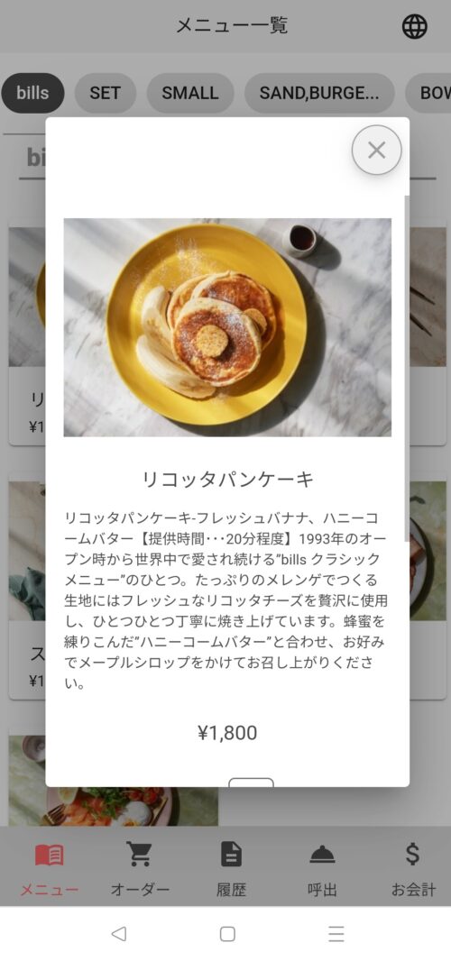 QRコード読んでリンクにアクセスすると、メニューを見ることができます。メニューには写真もついているので、どんなお料理かよくわかります。