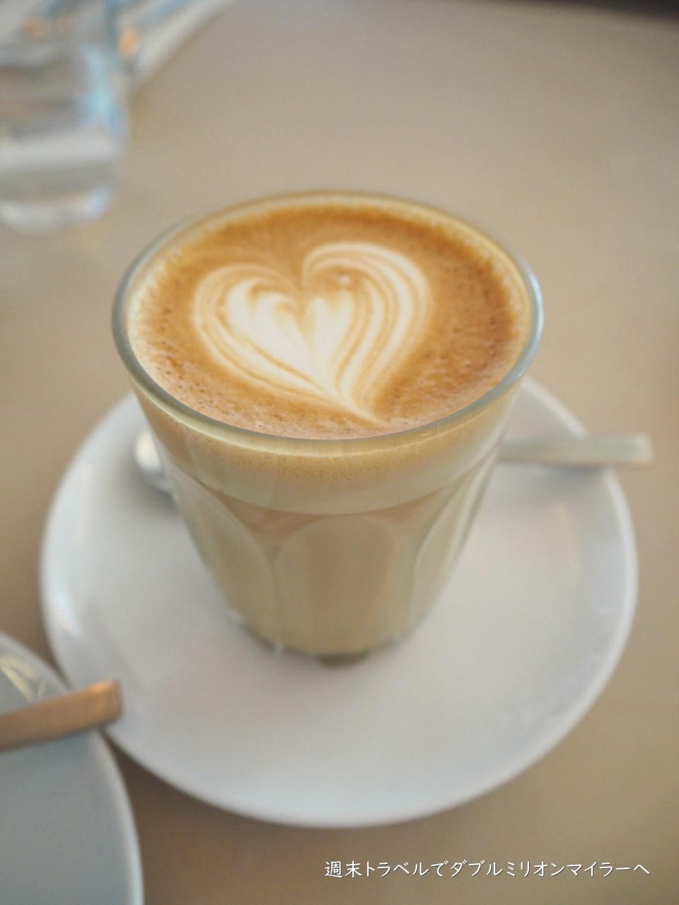 妻はミルクの割合が多い、フラットホワイトに。オーストラリアらしいカフェメニュー、シドニーのカフェでいただいたコーヒーを思い出します。