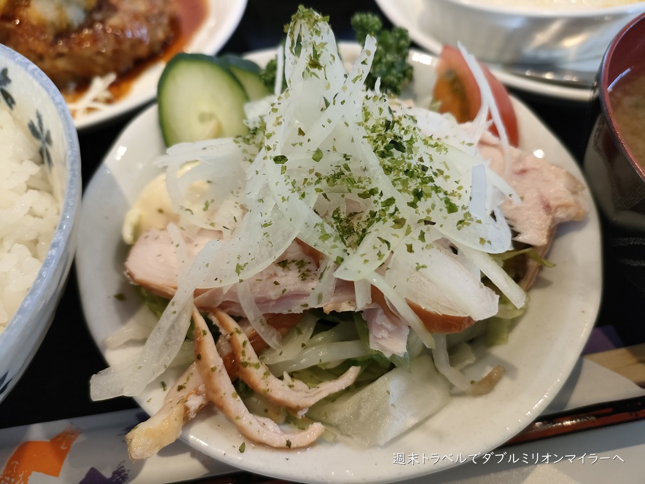 サラダはおまけくらいに考えていたのですが、しっかりした1品として出せるようなレベルの一品、乗っているチキンがよく、そしてスライスオニオン、トマト、きゅうりはシャキシャキと、とても美味しく驚きました。