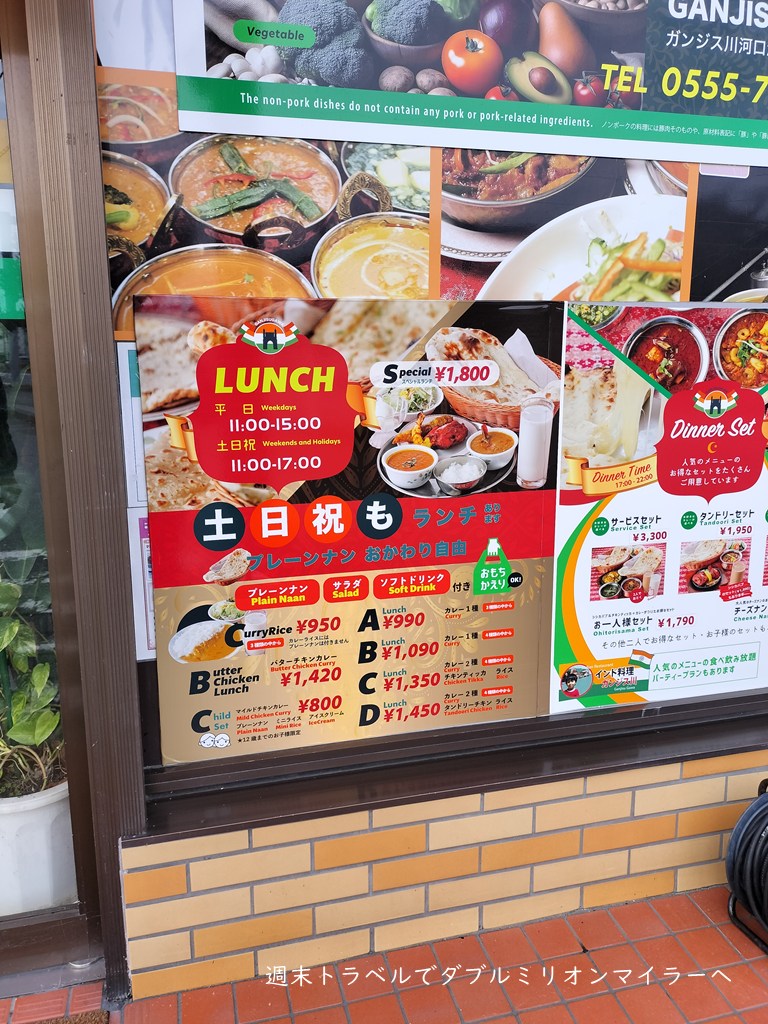 毎年の河口湖滞在で1度は出かけるランチスポット、この日は遠出の予定がなく、食料品の買い出しで船津周辺に出たため、「ガンジス川」でお昼ごはんを食べることにしました。
