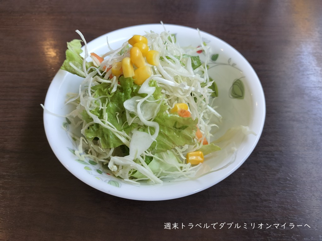 サラダももれなくついてきます。千切りキャベツにコーンの組み合わせです。