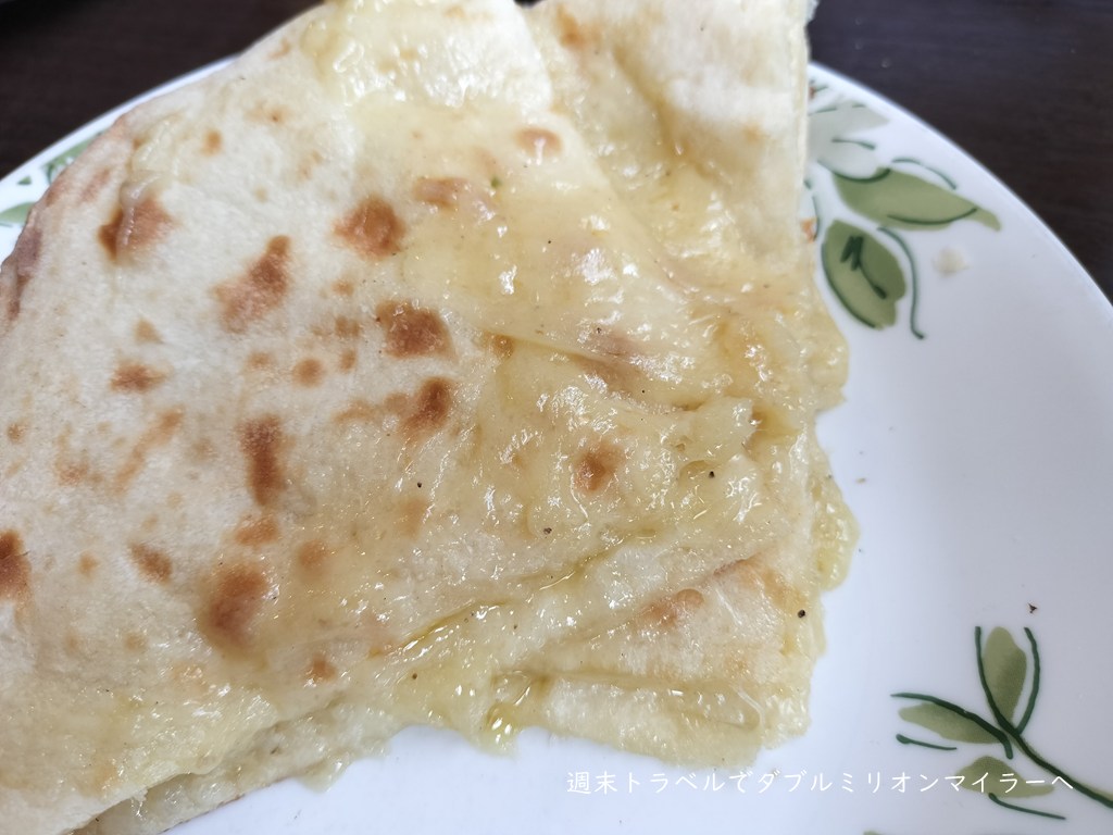 夫がチーズナン、妻がプレーンナンを注文し、分けながらいただきましたが、分けて正解!チーズナンはチーズの量が多くて、持て余してしまうほど。プレーンナンにチーズをつけていただくくらいが良いバランス、夫婦で食べきるのに苦労するボリューム感でした。
