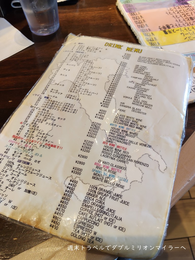 席に着くと、メニューが渡され、順番にオーダーが取られていきます。
