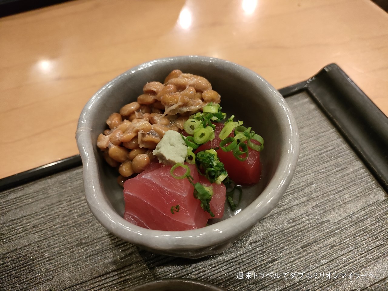 この日の小鉢は鮪納豆。長らく「二色御膳」をいただいていますが、納豆が出てくるのは初めての経験。お刺身として美味しくいただける立派なまぐろと一緒でしたので、納豆もグレードアップしたように感じました。