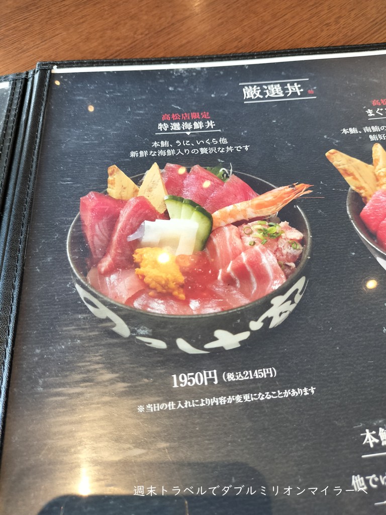 夫は「特選海鮮丼」に決めていた様子、このページで写真にくぎ付け。