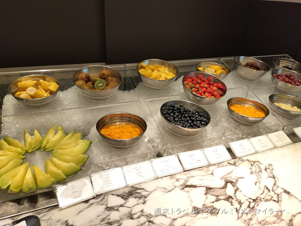 東南アジアのホテルに比べると華やかさがありませんが、メロン、ブルーベリー、いちご、キウイ、バナナなど彩りよくラインアップされています。控えめに見えますが、このフルーツがなによりも絶品、吟味されたものばかりで、味の濃さや甘さが半端ないものばかり。見た目だけではわかりません。