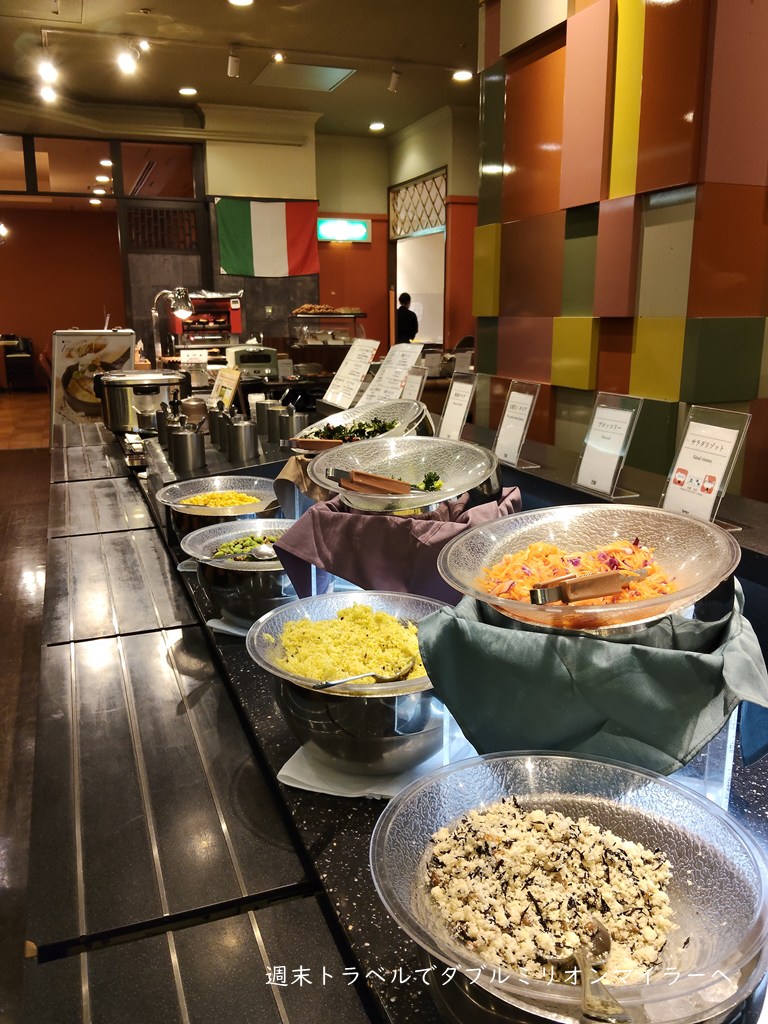 レストラン中央にあるビュッフェ台にお料理が並んでいます。