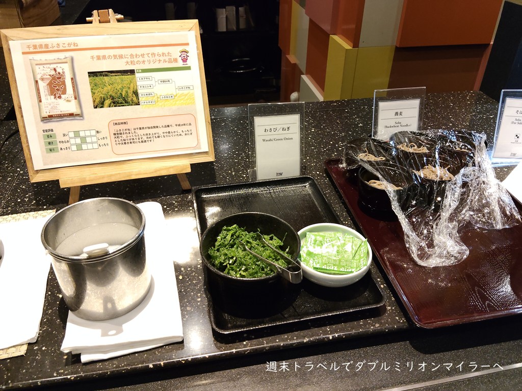 朝食用にとそばの用意もあります。具材は、シンプルにねぎとわさびだけですが、少しだけそばをいただけるのはうれしいもの。