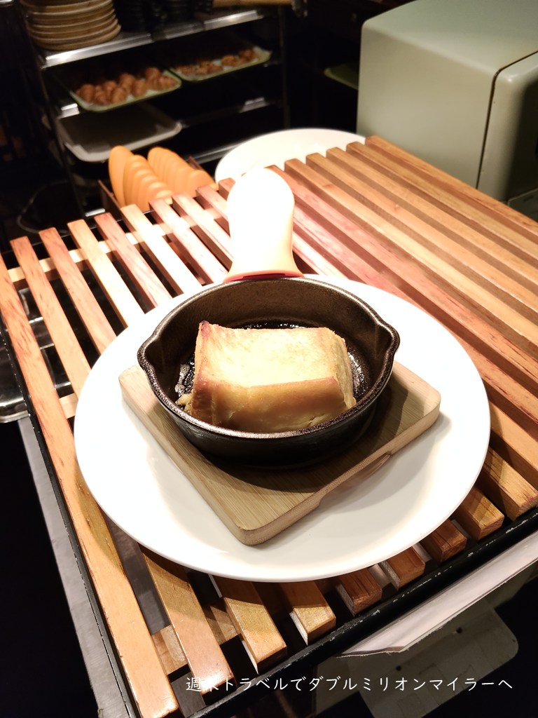 夫婦ともに美味しいと思ったのは、 熱々のスキレットに入ったフレンチトースト。出来上がった時点でしっかりと焼き上げられており、いただくときには、香ばしい香りが立ち上ります。