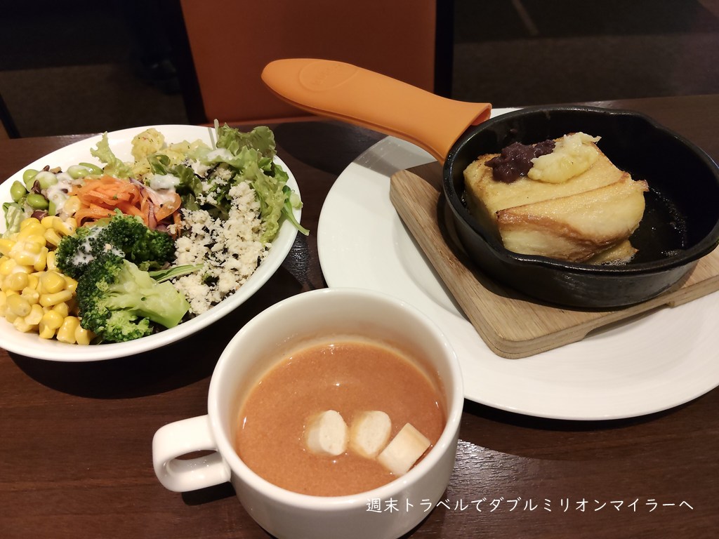 甘い系メニューが充実の朝食ビュッフェですので、サラダと和食中心で楽しんだ後、最後はフレンチトーストやパンケーキで終えるのが良いように思います。