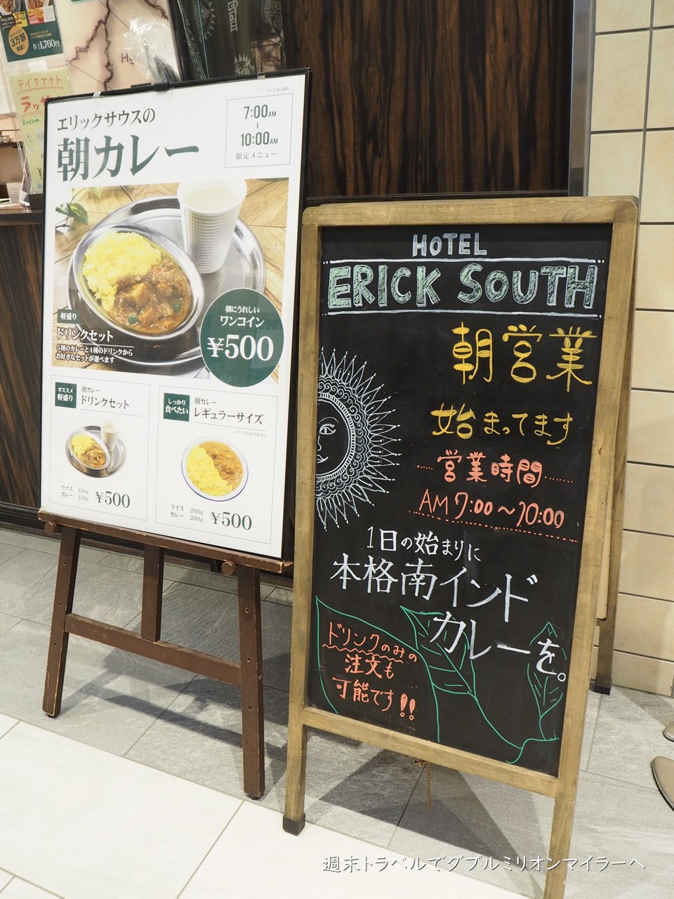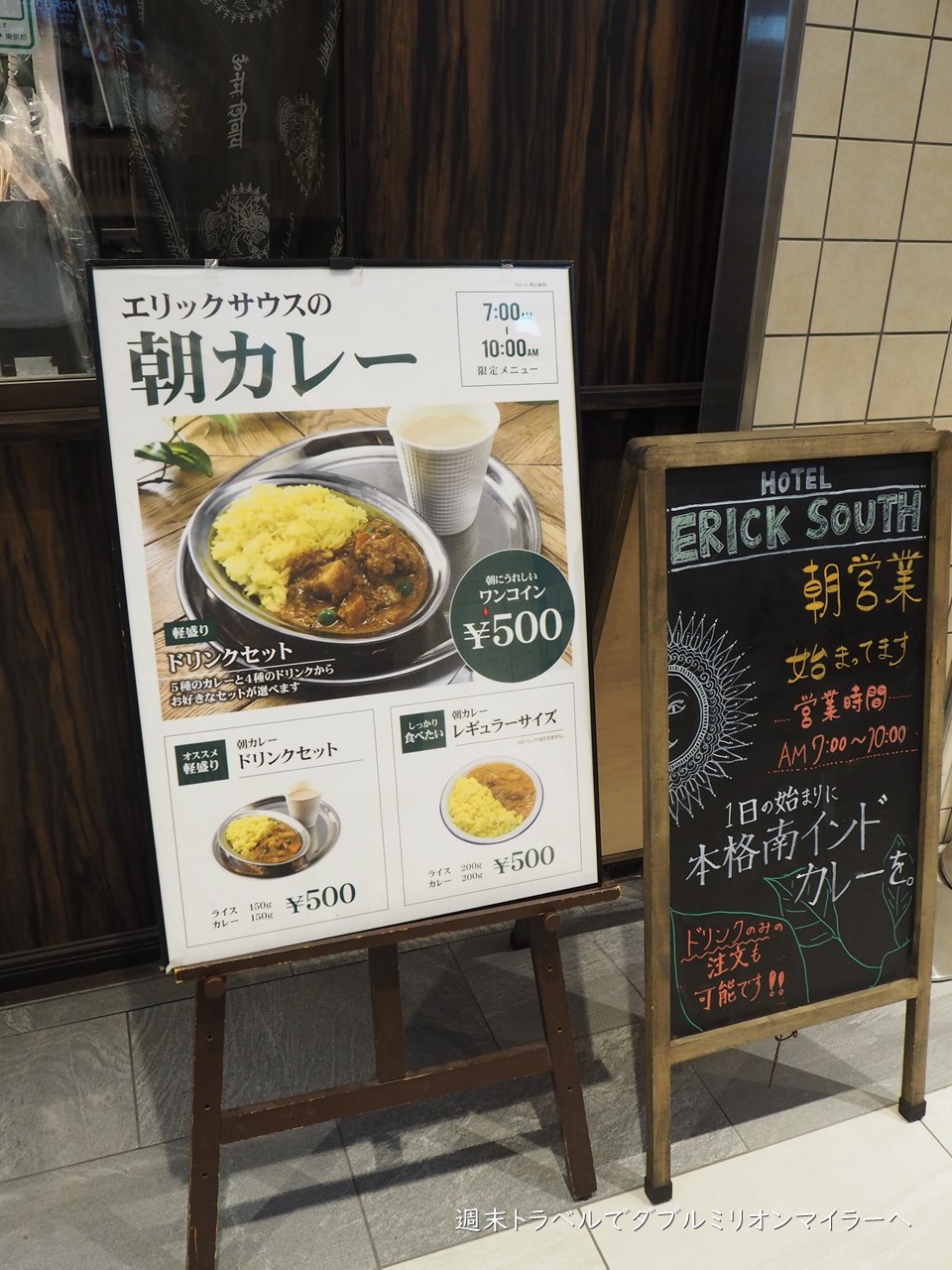 週末の土曜日午後、赤坂まで買い物。帰り道で東京ガーデンテラス紀尾井町を通った折、エリックサウスの前にあった「朝カレー」の看板が目に入りました。