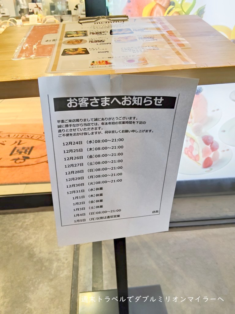 最後に年末年始の営業予定が掲示されていましたので、紹介します。年内は12/30まで。大晦日とお正月三が日(12/31~1/3まで)が休業、1/4(日)からは通常の時間帯営業しているようです。