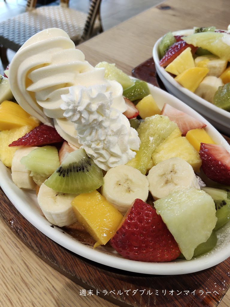 いつもと違うと思ったのは、フルーツ以外の部分。これまでモーニングの時間帯はアイスクリームと生クリームの組み合わせだったのですが、この日はソフトクリーム。