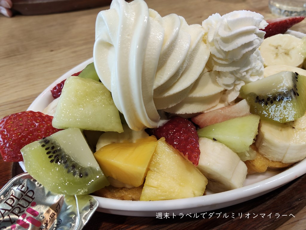 たっぷりのフルーツとソフトクリームで大満足!ボリュームがあり過ぎて、久しぶりに「食べすぎかも」と感じました。